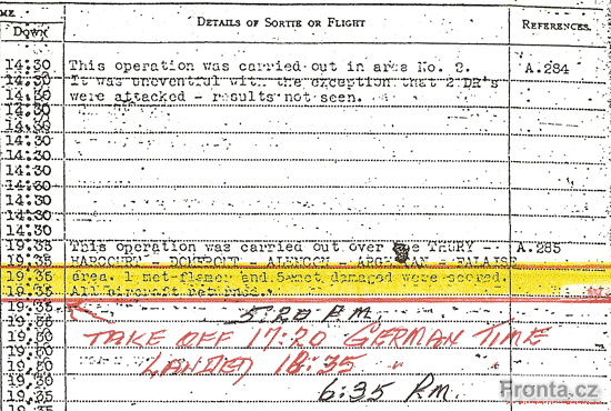 3.) Operations Record Book, ORB, (do češtiny přeloženo jako kniha operačních záznamů) vedla každá operační jednotka RAF. ↑ Návrat do textu