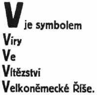 Podle deníku Moravská Orlice znamená „V – Vítězství Říše – Vítězství evropského ducha – Vítězství evropské kultury“. Stejný deník ujišťoval čtenáře, že „Vítězství Říše přinese Evropě trvalý mír a blaho pracujícímu lidu všech evropských národů, osvobození z jařma mezinárodního židovstva“.
