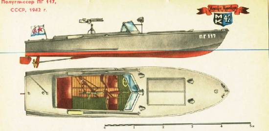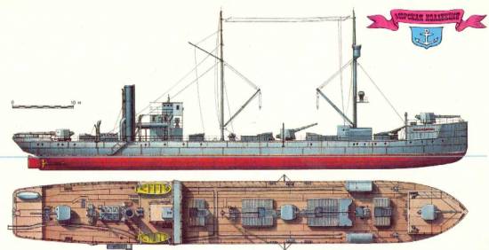 Tentýž dělový člun na modelářském plánku z časopisu Modělist-Konstruktor. Je zde zřetelně vidět, že původně toto plavidlo patřilo do třídy speciálních výsadkových plavidel, do typu Elpidifor z dob carského Ruska - viz typický tvar přídě sloužící původně k zavěšení výsadkových můstků na boky zvýšené přídě a podle nakresleného měřítka lze rovněž zřetelně rozeznat nepříliš velký ponor a tvar i úhel dna pod přídí