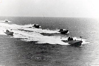 Takhle se obvykle přibližoval výsadek na rychlém kluzáku k pobřeží. Ztráty míval dost velké - vojáci neměli žádné možnosti krytí - a trup člunu byl po takové akci od nepřátelských střel a střepin granátů děravý jako řešeto