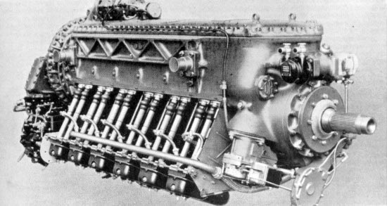 Instalace motoru Gipsy Twelve - všimněte si přívodu chladícího vzduchu