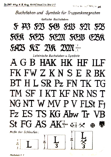 | 14 | velitelství tankových divizí | růžová | "D" v gotickém stylu s arabskou číslicí |