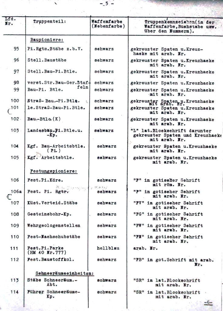 | 53c | pevnostní protitankové oddíly | růžová | "FP" v gotickém stylu s římskou číslicí |