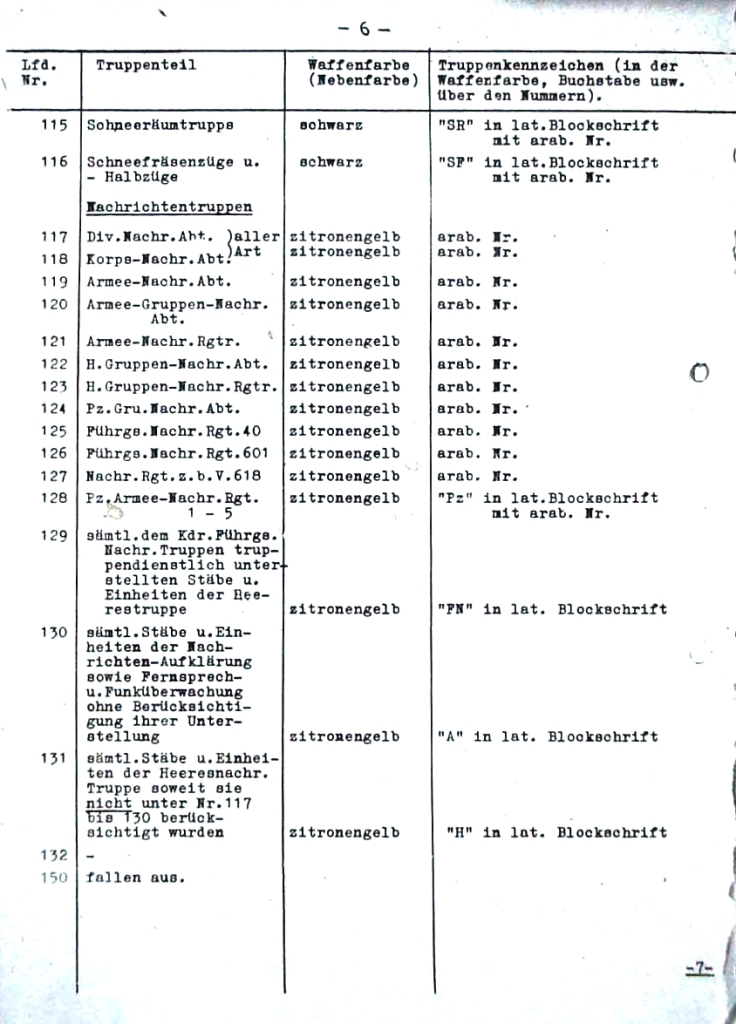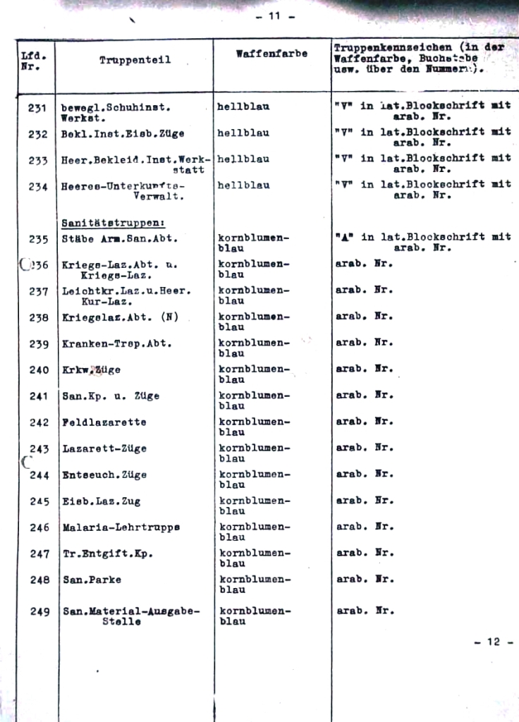 | 323 | zpravodajské jednotky | bílá | "Abw." v latinském stylu s arabskou číslicí |