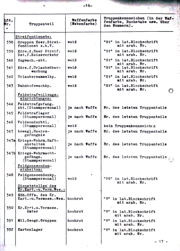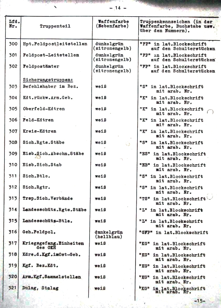 | 317 | útvary zajateckých táborů OKH | bílá | "KG" v latinském stylu s arabskou číslicí |