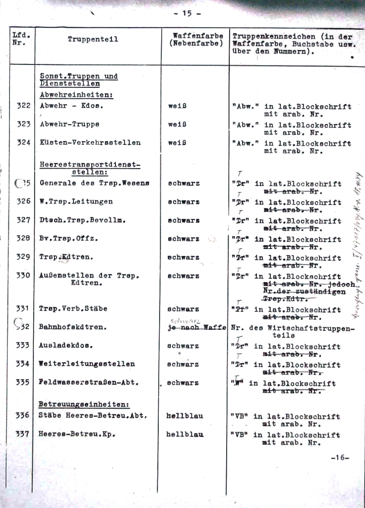 | 322 | zpravodajská velitelství | bílá | "Abw." v latinském stylu s arabskou číslicí |