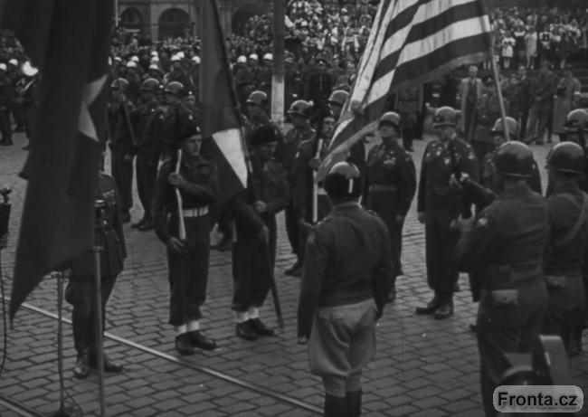 Je to poprvé v našich dějinách, kdy hlavě československého státu a současně československému lidu byla dána příležitost, aby na historické půdě Staroměstského náměstí uvítali vojenskou jednotku slavné vítězné armády Spojených států, které spolu s Velkou Británií a Sovětským svazem přispěly v měřítku tak značném k osvobození naší země.