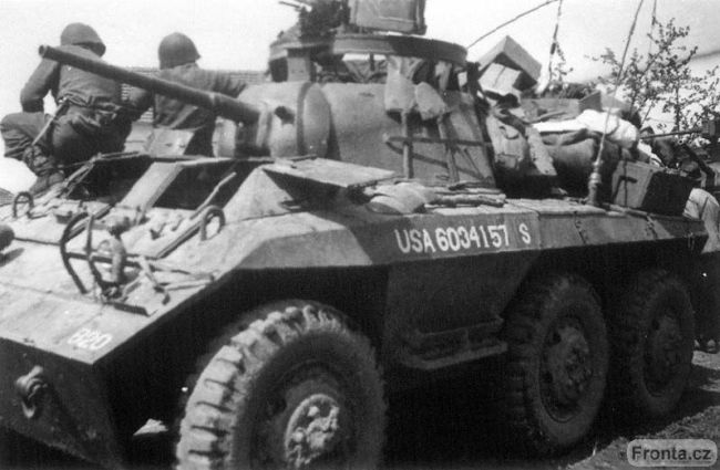 Obrněný vůz M8 Greyhound ve Velichovkách dne 8. května 1945.