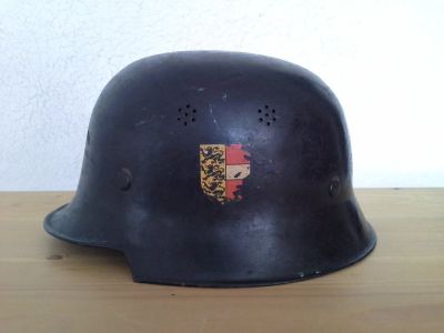 Dobrý den, jedná se o německou civilní helmu M34 používanou za války u policie požární ochrany (Feuerschutzpolizei). Znak na levém boku helmy je znakem rakouské spolkové země Korutany (Kärnten), takže předpokládám, že by se mohlo jednat o helmu z poválečné výroby.