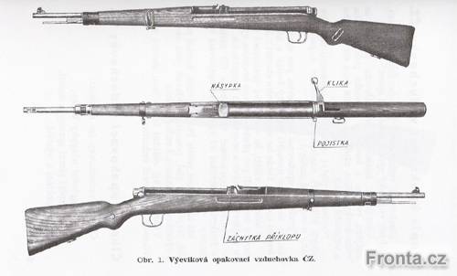 Opakovací vzduchovka ČZ. Česká Zbrojovka a. s. v Praze, továrny ve Strakonicích, 1935