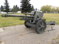 V této ráži a s děleným střelivem jsou fakticky pouze dvě zbraně, které se mohly na uvedeném bojišti vyskytovat. Existuje sice nepatrná možnost, že by šlo například o kořistní munici československého (německý 10,5-cm K 35 (t) – původně československý 10,5cm hrubý kanon vz. 35) nebo jiného původu užitou Němci, ale taková pravděpodobnost je opravdu mizivá, nehledě na druh střely, který se jinak zařadit prakticky nedá. Československé zbraně tohoto modelu šly kromě 36 kusů, jimiž byla vyzbrojena slovenská armáda, téměř bez výjimky na vyzbrojení Atlantického valu.