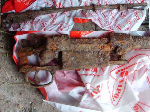 Přiložená fotografie není úplně čistá, přesto je z ní rozpoznatelná puška typu Mauser k98. Jedná se o německou opakovací pušku, za druhé světové války nejrozšířenejší zbraň německé armády, vyrobena byla v počtu přes 14 milionů kusů.