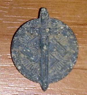 Tento odznak jsem nejprve pokládal za nějakou zvláštní variantu sportovního odznaku SA, ale jak nás upozornil čtenář D.H., jde o zinkový odznak, který se rozdával během sbírky válečné zimní pomoci (Kriegswinterhilfswerk - KWHW) pořádané různými přidruženými organizacemi NSDAP (NSKOV, NSRKB, DRK atd.) u příležitosti Dne Wehrmachtu 28. a 29. března 1942. V sérii s tímto odznakem jsou ještě dva další s obdobnou symbolikou.