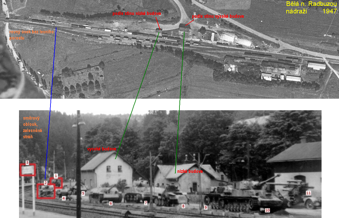 Dobrý den, velice Vás prosím o pomoc při identifikaci fotografie a techniky na ní zobrazené (viz. příloha). Fotografie je z webu p. Doležala (http://www.dolin.estranky.cz/fotoalbum/FOTO-1939-1945/Hrusky-1945/). U fotografie je popisek, že se jedná o železniční stanici Bělá nad Radbuzou, což se domnívám, že není správně. Prosím o identifikaci dle legendy na fotografii: 1.-2. Typ stroje a příslušnost k jednotce 3. Nápis na ceduli 4.-11. Příslušnost k jednotce Místo a datum pořízení snímku. Mnohokrát děkuji za Vaši případnou odpověď. Křížek Radek