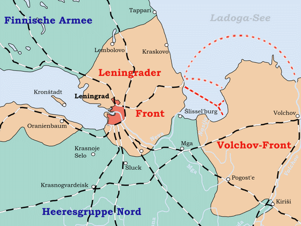 Když 8. září 1941 německé jednotky skupiny armád Sever dobyly město Šlisselburg na jižním břehu Ladožského jezera, odřízly tak veškeré pozemní spojení města se světem (severní břeh jezera byl opět v rukou Finů od srpna 1941). Zásobování města tak zůstalo odkázáno na dopravu po jezeře (podrobnosti viz článek o Ladožské vojenské flotile). Lodě vyplouvaly převážně z okolí města Novaja Ladoga z Volchovského zálivu.