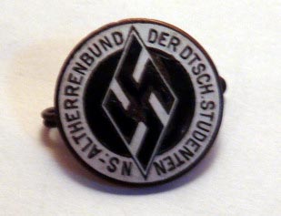 Dobrý den, jedná se o odznak příslušníka Nationalsozialistische Altherrenbund der Deutschen Studenten (přibližně přeloženo: Spolku bývalých příslušníků německého nacionálně socialistického studenstva). Jednalo se tedy formálně o spolek bývalých členů německého Spolku nacionálně socialistických studentů (Nationalsozialistischer Deutscher Studentenbund), kteří si i po absolvování školy zachovali kontakt na dřívější prostředí, a spolek, jehož byli v době studií členy, který i v pozdější době jistým způsobem podporovali, například i finančně.