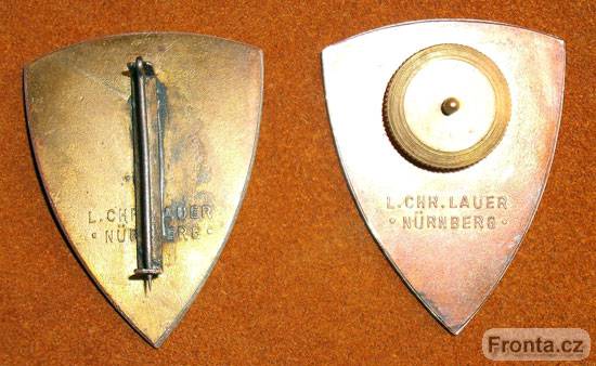 Dobrý den, chtěl bych Vás požádat o radu s určením odznaku. Mé pátrání, fota a skeny přikládám. Odznak pochází z pozůstalosti, majitel byl št.plk. Josef Novák, který byl členem delegace vedené gen. Ečerem na Norimberském procesu. Odznáčky měří 3,7 - 2,8 mm. Ten se špendlíkem má barvu okraje jakoby do mědi a šroubovací hliníkovou. Zespodu je uvedeno "L.CHR.LAUER NURNBERG".