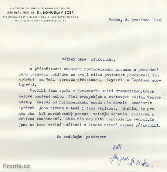 Bohuslav Ečer, Norimberský proces, Praha 1946