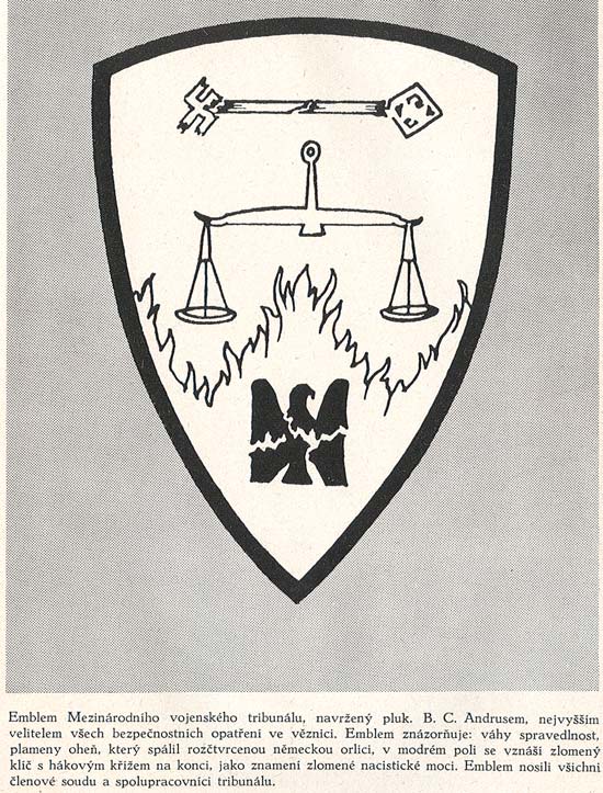 Ostrahu norimberské věznice a tribunálu zajišťovala zvláštní americká jednotka 6850th Internal Security Detachment pod Andrusovým velením. Znak norimberského tribunálu její příslušníci nosili na přilbě, čepici, výložkách a jako nášivku na paži (Nuremberg War Crimes Trial Patch):
