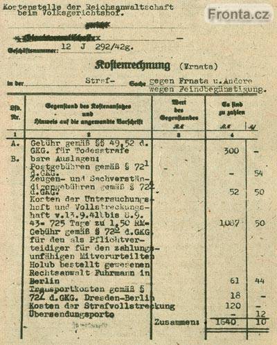 300 říšských marek za popravu, celkem 1640 říšských marek