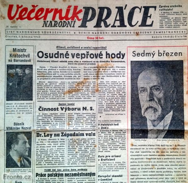 S Masarykovým jménem se v prvním roce existence protektorátu nakládalo poměrně opatrně, ještě 7. března 1940 se na úvodních stranách českých novin připomínalo 90. výročí Masarykova narození s tím, že „Masaryk - tento nejrealističtější realista - zajisté by naši přítomnou skutečnost uznal jako zjev, s nímž se český národ musí vyrovnat klidně, důstojně, bez nářků a snění. Pravá pieta k Masarykovi-člověku učí nás pečlivě vybírat z jeho životního díla, promítati do přítomnosti jen ty jeho názory a výroky, které by sám zesnulý opakoval i dnes, po uvážení všech nových okolností.“ O rok později se již Masaryk v tisku nezmiňoval.