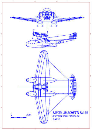 Savoia Marchetti SM.55 se proslavil ve 20. a 30. letech při dálkových letech, hlavně v roce 1930 a 1933. V prvním případě letělo dvanáct strojů z Říma do Rio de Janeira, formaci vedl sám italský ministr letectví, maršál Italo Balbo, ve druhém, ještě bombastičtějším letu dorazilo 24 SM.55X (opět v čele s Balbem) z Říma na světovou výstavu do Chicaga. Díky svému velkému doletu byl SM.55 od konce 20. let využíván k námořnímu průzkumu, v září 1939 ale již byl zastaralý a Italové disponovali již jen 13 kusy v záloze. Co je zajímavé, podle polské publikace [1] italské letectvo vykazuje na konci roku 1940 dvanáct bojeschopných kusů SM.55X/SM.55R nacházejících se v Libyi, Albánii nebo na ostrovech v Egejském moři, plus jeden v repasi u S.R.A.M. (Squadre Riparazioni Automobili e Motori – zhruba opravárenské jednotky automobilů a motorů). Doklady o jejich bojovém nasazení v rámci Regia Aeronautica jsem ale nenašel.