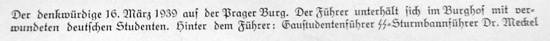 SS-Sturmbannführer na uvedené fotografii je Rudolf Meckel, vedoucí nacistických studentů v Praze. Identifikován je v knize Wolfganga Wolframa von Wolmara (vedoucí tiskového oddělení v Úřadu říšského protektora) Prag und das Reich vydané v Drážďanech v roce 1943: