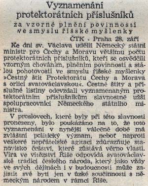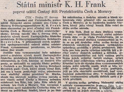Zavedení zvláštního řádu v protektorátu pokládám za nesprávné, protože by se tím dával protektorátu charakter samostatného státu, což naprosto odporuje zásadní politické linii, podle níž se musí Čechy a Morava považovat za součást říše. V úvahu by přicházel jedině návrh vybrat určitá německá vyznamenání, s nimiž by pak bylo popřípadě spojeno udělení práva německého státního občanství.