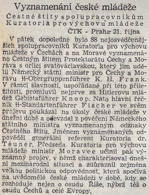 Potřetí Frank vyznamenával na svátek sv. Václava 28. září a naposledy v roce 1944 ještě 21. října 1944, kdy vyznamenal 88 pracovníků Kuratoria pro výchovu mládeže.