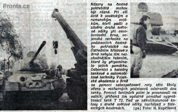 ![]() Odvoz tanků z brněnského pohřebiště (Rovnost 12. prosince 1991) |