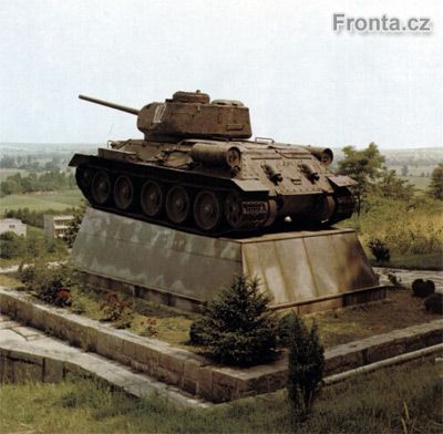 Tank z výzbroje 1. čs. sam. tankové brigády. Na náměstí Míru v Kroměříži od roku 1946 stál také památník s německým protitankovým kanónem 7,5 cm PaK 40, v roce 1974 předán VHÚ. |