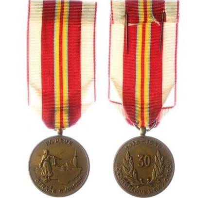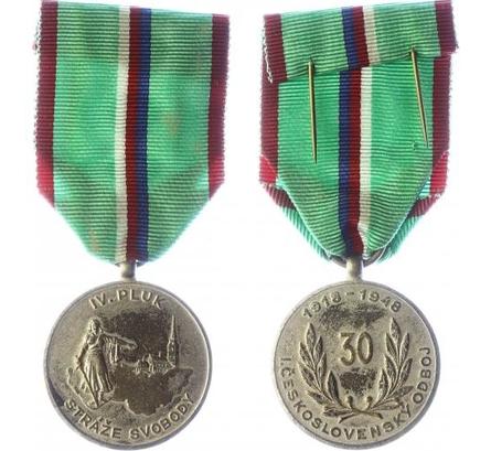 Tyto medaile se udělovaly k 30. výročí vzniku ČSR v roce 1948, na přední straně je zobrazena plzeňská katedrála sv. Bartoloměje a nápis "IV. PLUK STRÁŽE SVOBODY", na zadní straně je nápis "1918-1948 I. ČESKOSLOVENSKÝ ODBOJ".