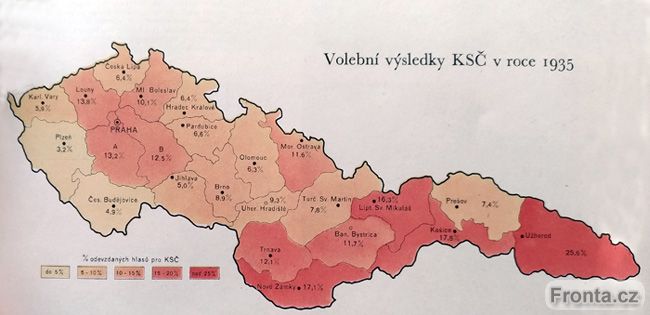 Výsledky KSČ ve volbách v roce 1935 ukazují, že strana dosahovala před válkou lepších výsledků na Slovensku a na Podkarpatské Rusi než v českých zemích: