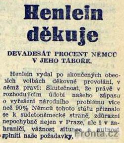 „V nacionálním socialismu nachází každý Němec realizaci koncepce svého života a morálky. Sudetoněmecká komunita nemůže zůstat a nezůstane stranou filozofie, kterou dnes všichni Němci na světě s takovou radostí vyznávají.“
