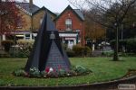 Detail střední části památníku odhaluje podobu se znakem 617. sqn. Pod ním jsou vyjmenovány válečné kampaně, kterých se jednotka zúčastnila: nemůže chybět nálet na přehrady, Normandie, nálety na přístavy v Biskajském zálivu a v samotném Německu; pevnost Evropa jako taková, Francie a Německo, Severní moře a La Manche a konečně jako samostatná kampaň je uvedena i série útoků na bitevní loď Tirpitz.