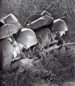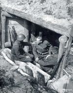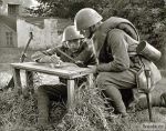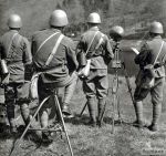 Fotografie zachycuje hlášení během cvičení pravděpodobně v polovině 30. let. Vojáci mají již nové přilby vz. 32, o stolek jsou opřeny dvě pušky vz. 24 s nasazenými bodáky, u vojáka vpravo si potom můžeme všimnout pouzdra na plynovou masku, závěsníku na bodák vz. 24 a polní lopatky v pouzdře.