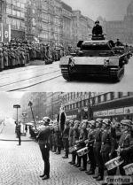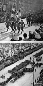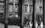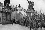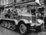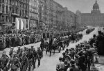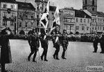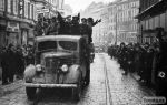 Německá armáda vítána 15. března 1939 pražskými Němci na Hradčanském náměstí.-