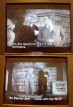 Videoukázka černého humoru v nacistickém filmovém průmyslu: v tomto kabaretním skeči z roku 1941 knihkupec vysvětluje novému pracovníkovi, že pozornost zákazníků nejlépe upoutají protiklady, například titul Věčný Žid vedle knihy Odváto větrem (původní název románu, který se v českém překladu jmenuje Jih proti Severu).