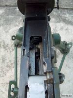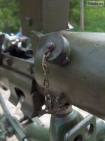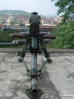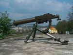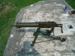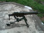 Celkový pohled na kulomet na polní trojnožce. Kulomet je natřen barvou khaki, k přemalování nesprávného barevného odstínu podstavce jsme se bohužel zatím nedostali.
