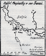 Náčrt čís. 34Směry dalšího postupu německých jednotek v polovině června 1940.