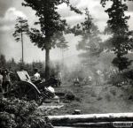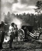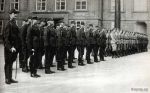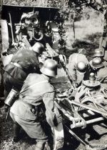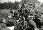 Svobodník během cvičení ve druhé polovině 30. let pozoruje "nepřítele" kvalitně zamaskovaným periskopem. Vojáci jsou oblečeni do kabátů vz. 30, na hlavách mají přilby vz. 32 a na přilbách barevné pásky, odlišujíci obě "bojující" strany při cvičení. Pásky byly buď v červené, nebo v modré barvě.