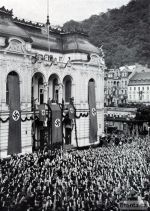 Tullio Cianetti, šéf italské fašistické Konfederace průmyslových dělníků na návštěvě v Karlových Varech 10. března 1939.-