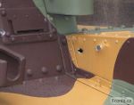 Držák prutové antény radiostanice s průstřely puškovou municí.-