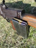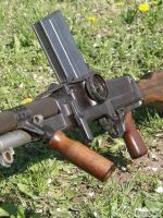 Schránkový zásobník se cvičnými náboji poválečné výroby. Tyto náboje měly střelu vyrobenou z olšového dřeva, které bylo upraveno mírným pražením střel. To zajišťovalo tříštivost střely, ta se po výstřelu z hlavně rozpadla, přesto byla do vzdálenosti několika metrů od ústí nebezpečná. K impragnaci se používal parafín.-