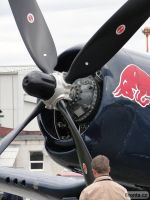 Zde zachycený stroj byl u USN veden pod BuNo 96995 (nesl výrobní číslo 9149). Vyrobený byl v roce 1945, ale do bojů již nestihl zasáhnout. Po válce skončil v Hondurasu, kde sloužil až do roku 1965. V roce 1979 byl zakoupen soukromníkem zpět do USA a prošel kompletní rekonstrukcí. Nyní je ve vlastnictví společnosti Red Bull, domovské letiště Salcburk, Rakousko, má přidělenu civilní registraci OE-EAS.