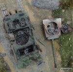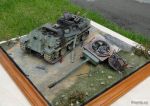 Zajímavé fotky jedné z našich historicky prvních galerií dobových fotek na Frontě - Šlapanice květen 1945 - inspirovaly k postavení diorámy brněnského modeláře Vladimíra Báňu. Zde prezentujeme výsledek. U některých fotek jsou záběry pořízeny přibližně ze stejného úhlu jako ty dobové, máte tak možnost přímo porovnat model se vzorem (u fotky je v takovém případě aktivní odkaz na dobovou fotku).
