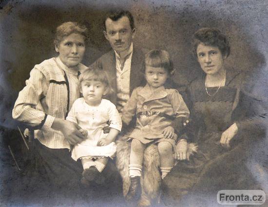 Cca 1920, Český Těšín. Gerhard Gaura (vpravo) na rodinné fotografii s mladším bratrem Rudolfem, babičkou, otcem a matkou.