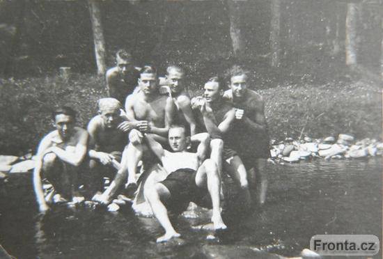 Cca 1939/40, Teschen. Poslední společná rodinná fotografie. Gerhard Gaura (třetí zleva) s bratrem Rudolfem a jeho dívkou (Zdenička).