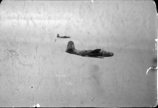 Torpédový letoun Boston s podvěšeným torpédem patřící Tichooceánskému loďstvu. Letoun pochází z dodávek v rámci spojenecké pomoci SSSR. Originální snímek je ze soukromých sbírek sovětského pilota–veterána