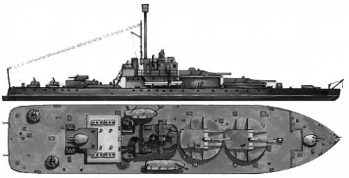 Monitor SVERDLOV (dříve URAGAN) třídy ŠKVAL v původním provedení s osmi kanony 120 mm